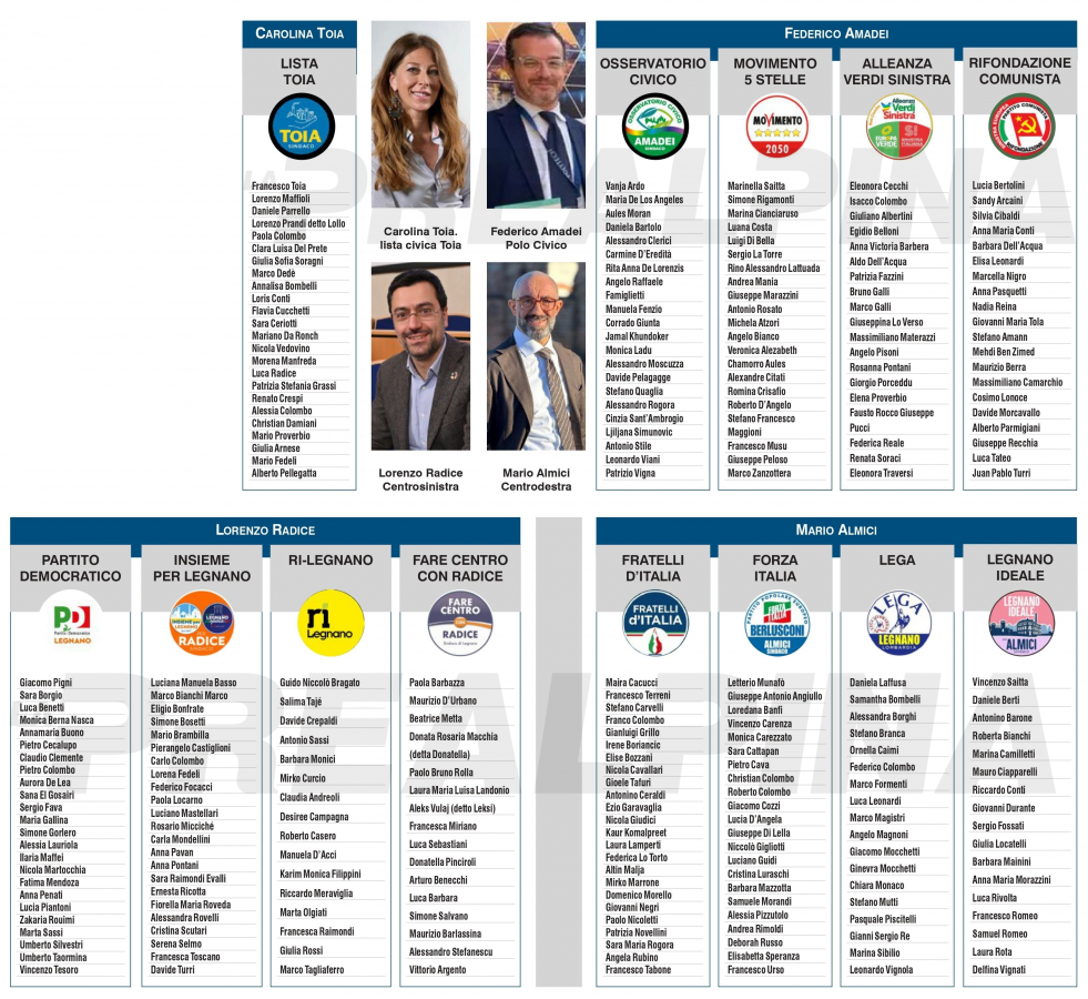 Sono Mario Almici, Federico Amadei, Lorenzo Radice (sindaco uscente) e Carolina Toia, i candidati alle elezioni amministrative 2026 di Legnano. Gli elettori saranno chiamati al voto domenica 24 e lunedì 25 maggio. L’eventuale ballottaggio si terrà il 7 e l’8 giugno.